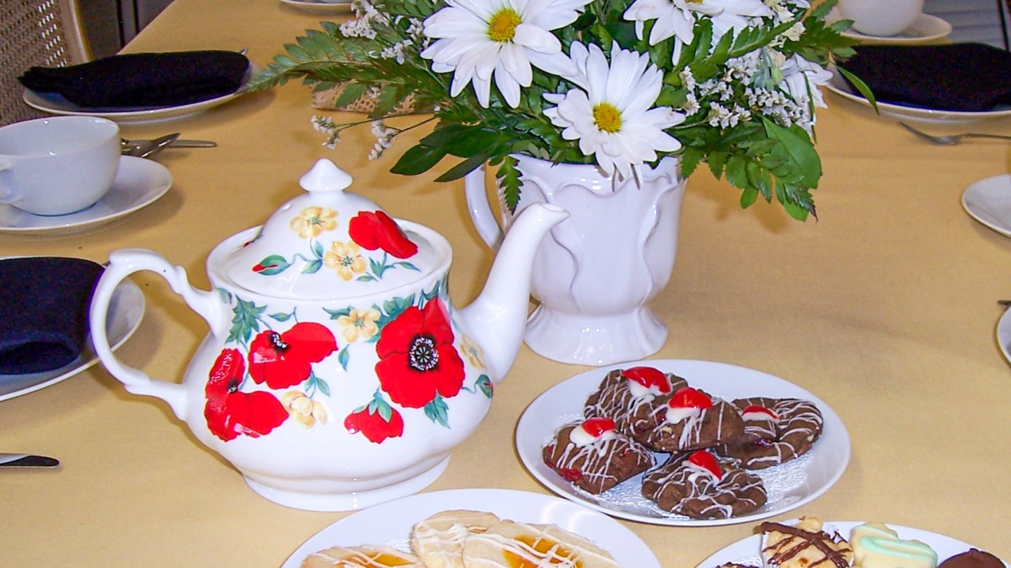Rich chocolate cookies baked with cherries and topped with a white vanilla chocolate glaze.