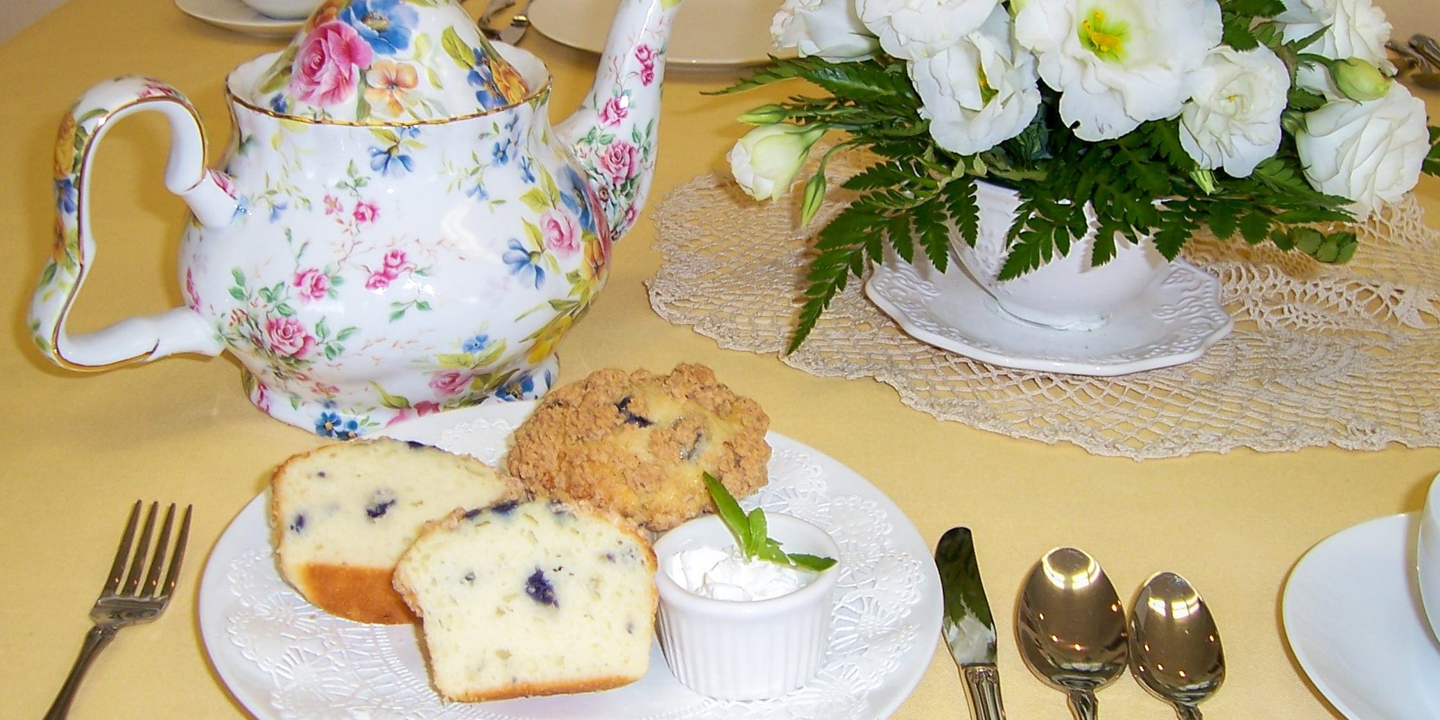 - In a large bowl, combine flour, sugar, baking powder, and salt. Add blueberries. In another bowl beat egg, half and half, and apple sauce. Stir in melted butter. Mix with dry ingredients.