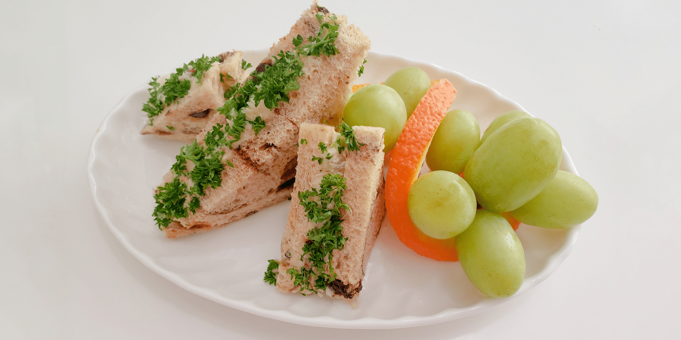 Bread is the key ingredient in most of my sandwiches. I use the traditional shape of a triangle for my chicken salad and the bread is raisin, but you can create squares diamonds, circles, and even hearts with cookie cutters from your chosen bread. I like to allow about 3 to 5 sandwiches for each guest. I usually like to toast and cut my bread ahead of time and freeze it. It is helpful in saving time the day of serving and it is also easier for handling.