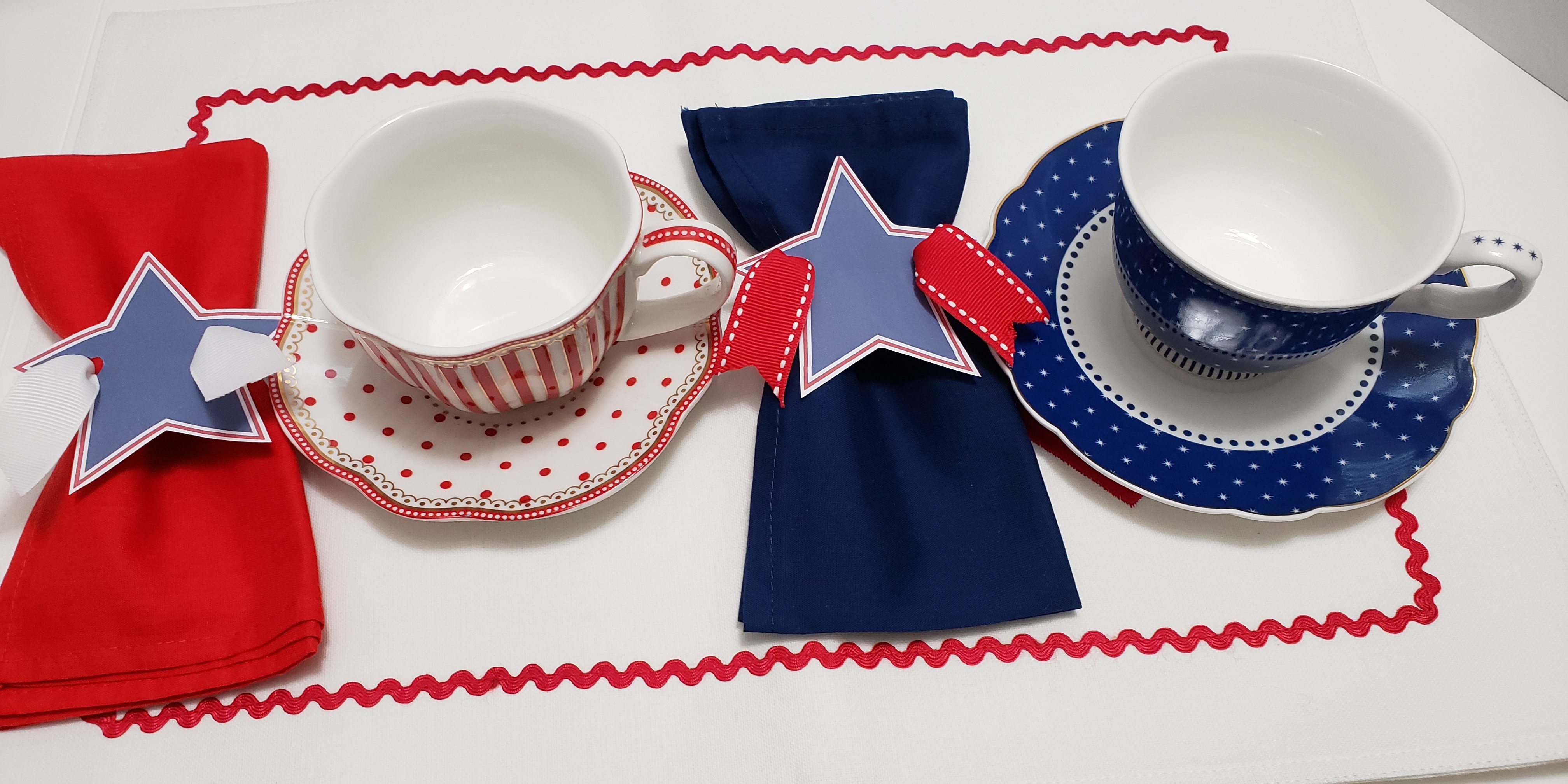 These star napkin ring holders add a special touch to your Memorial day table. They can also be used as place cards or gift tags.