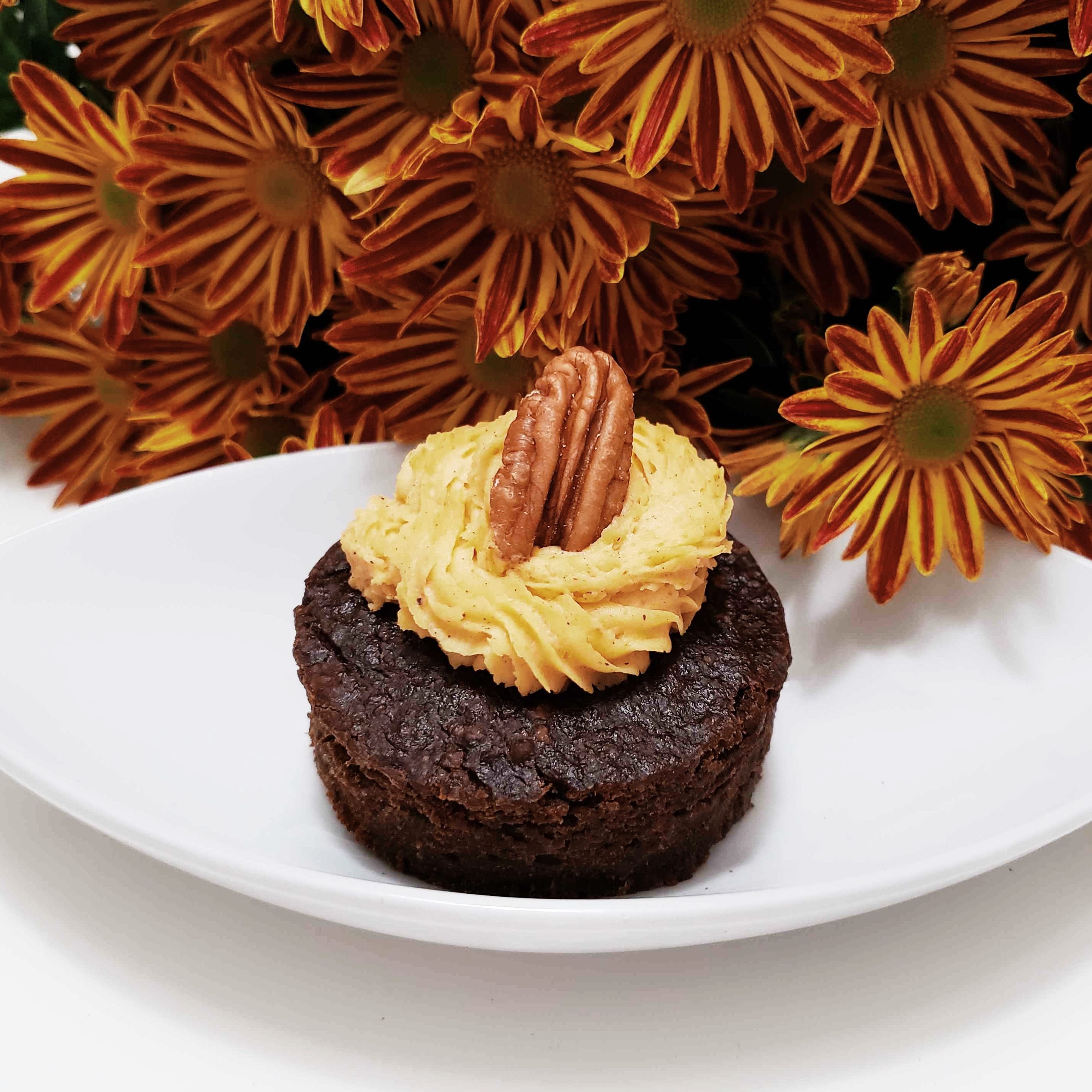 Surprise your friends and loved ones with our rich, chewy and nutty pumpkin brownies topped off with our Pumpkin Spice Whipped Cream.