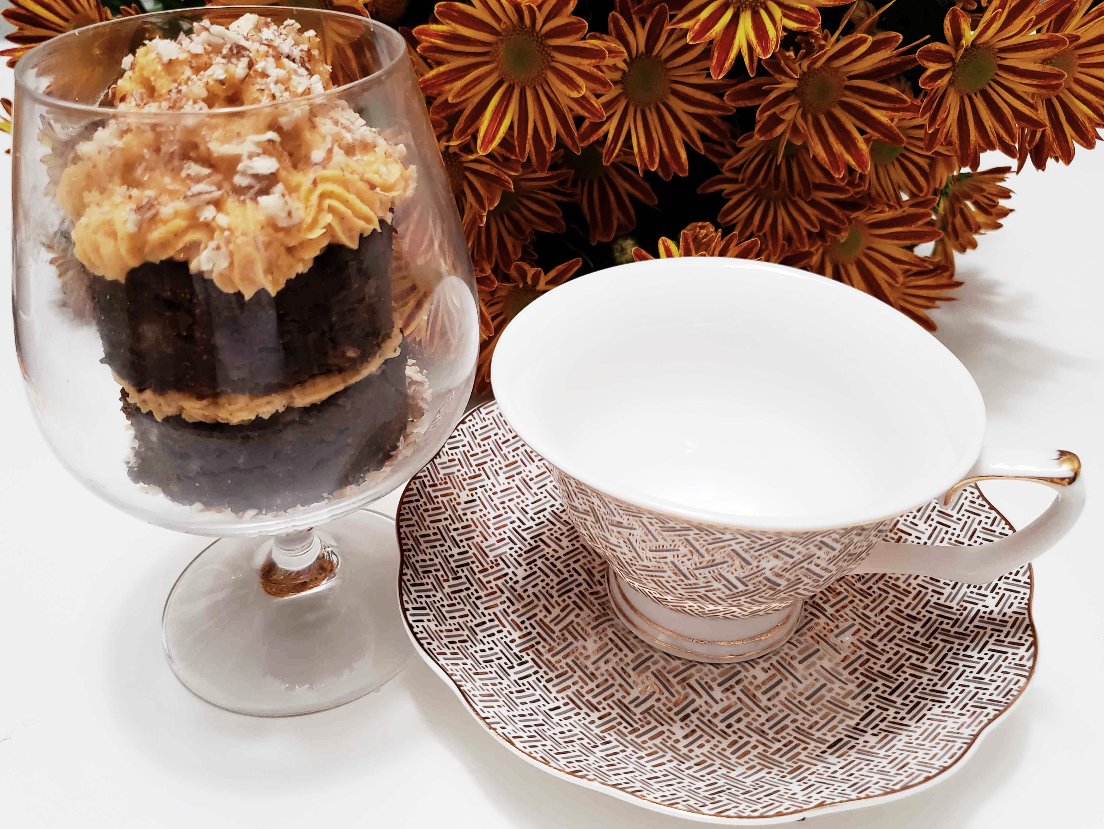 - For a special touch, load the Pumpkin Spice Whipped Cream into a decorating bag and swirl it onto your brownies. It's so easy and pretty your guests will be impressed. Top with added chopped pecans if you wish.