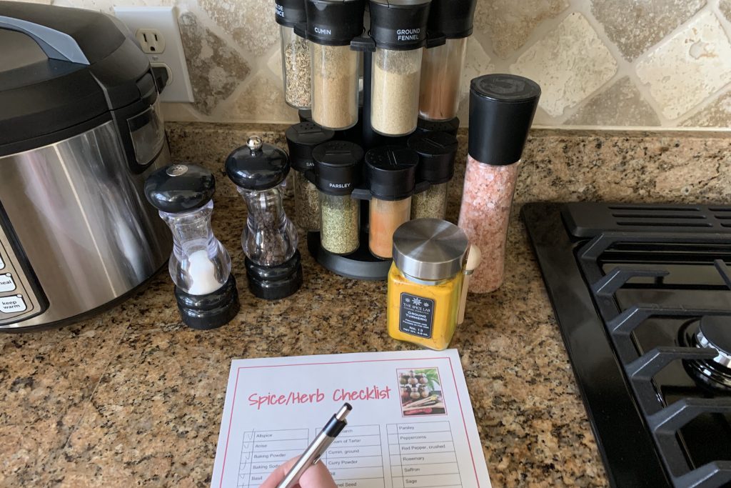 We are here in the kitchen and doing some spring cleaning. One of the things we take for granted is the spice rack. Remember spices do expire so we created a free Spice/Herb chart for you to check and see what spices you need or those that are out of code. Click below to download the PDF checklist and then you can print it.