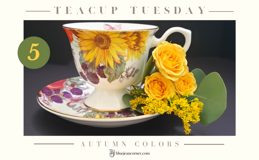 With summer coming to a close and autumn beginning tomorrow, I thought I would share one of my favorite teacup and saucer sets to use this time of year. It’s bright and vibrant but brings in the depth and warmth of fall colors.