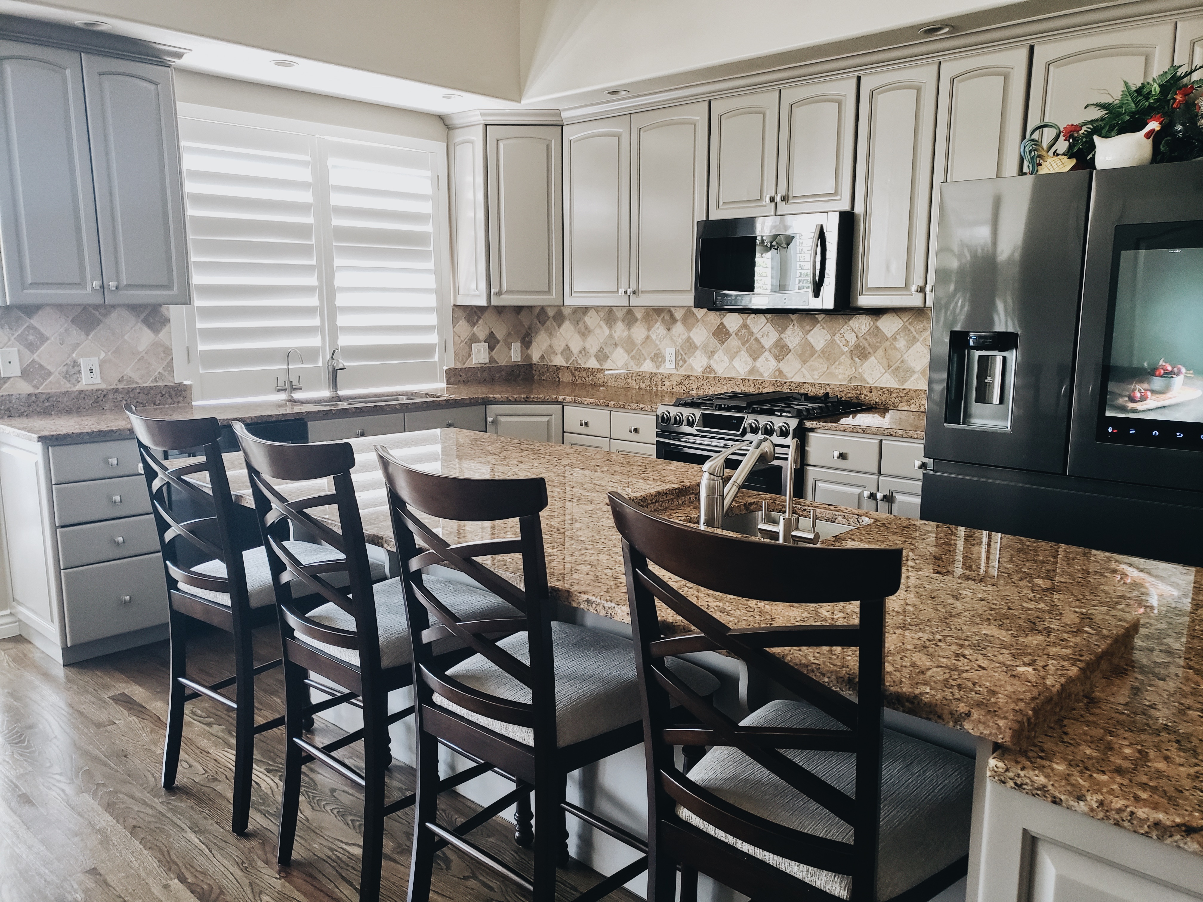 The contrast was perfect and added the update to our home that we were looking for. The rich, warm brown flooring pulled everything together.