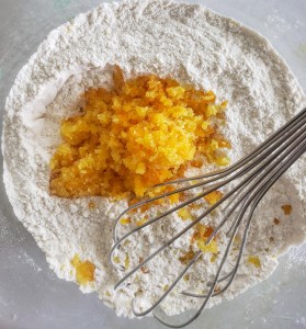 - In measuring cup stir sugar and orange zest together until zest is evenly distributed.