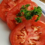Slice tomatoes into 1/4 inch slices.
