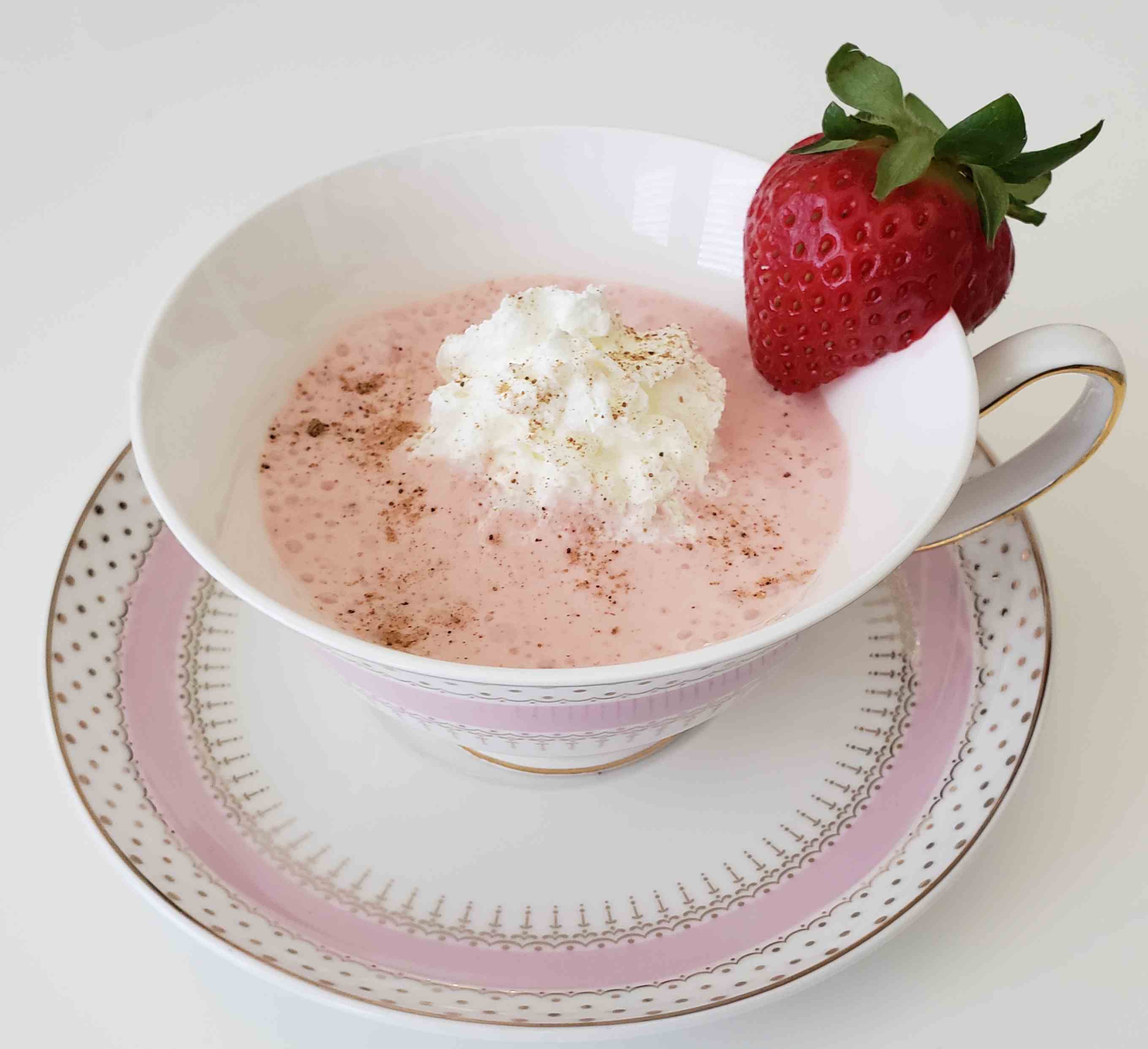 Garnish as desired. I use a dollop of whipped cream, fresh strawberries, mint and a sprinkle of nutmeg.