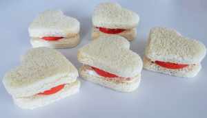 - Cut bread out with a cookie cutter. I used a heart-shaped one, but you can do circles as well.